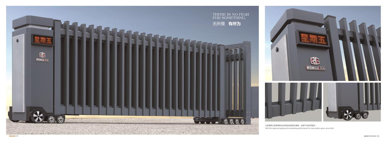 榮高電動(dòng)伸縮門我們看產(chǎn)品的細(xì)節(jié)部分就知道什么是質(zhì)量。榮高電動(dòng)伸縮門有主框雙立柱的組合設(shè)計(jì),強(qiáng)度和色彩搭配是傳統(tǒng)電動(dòng)伸縮門的突破。